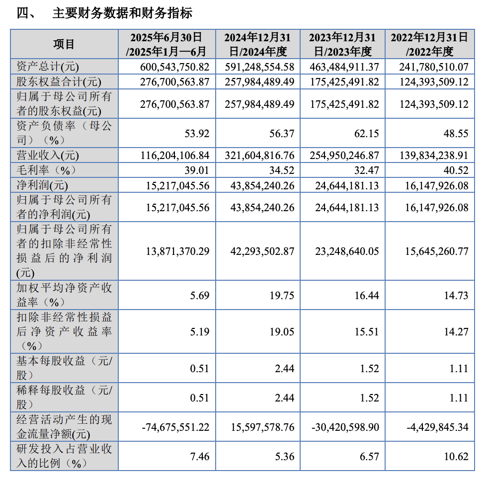业绩方面,2022年至2024年及2025年上半年(以下简称“报告期”),云眼视界实现营收1.4亿元、2.55亿元、3.22亿元、1.16亿元,净利润分别为0.16亿元、0.25亿元、0.44亿元、0.15亿元。